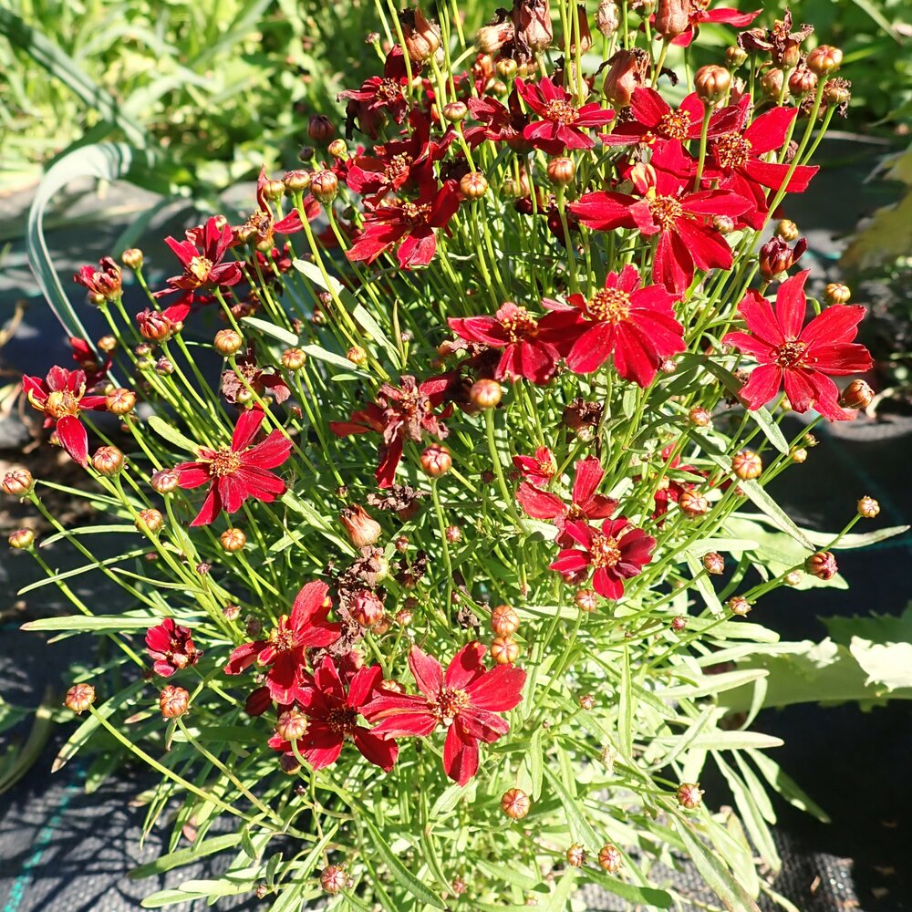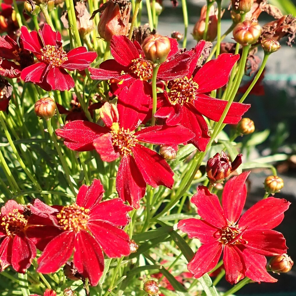 Une jolie coréopsis, qui forme une touffe compacte de 30- 40 cm haut avec un dense feuillage en aiguilles, surmonté de fleurs simples étoilées, rouge rubis. Après sa floraison couper les têtes lui permet de fleurir une deuxième fois. Une très belle variété, richement colorée, très florifère pour les massif, rocailles, talus ou dans les pots.