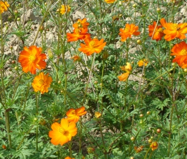 Annuelle aux nombreuses fleurs d'un bel orangé très vif, lumineuses. Pour bouquets et massifs. Plus tardif que les autres Cosmos, il se ressème spontanément. Culture facile. H=1 m à 1,50 m.