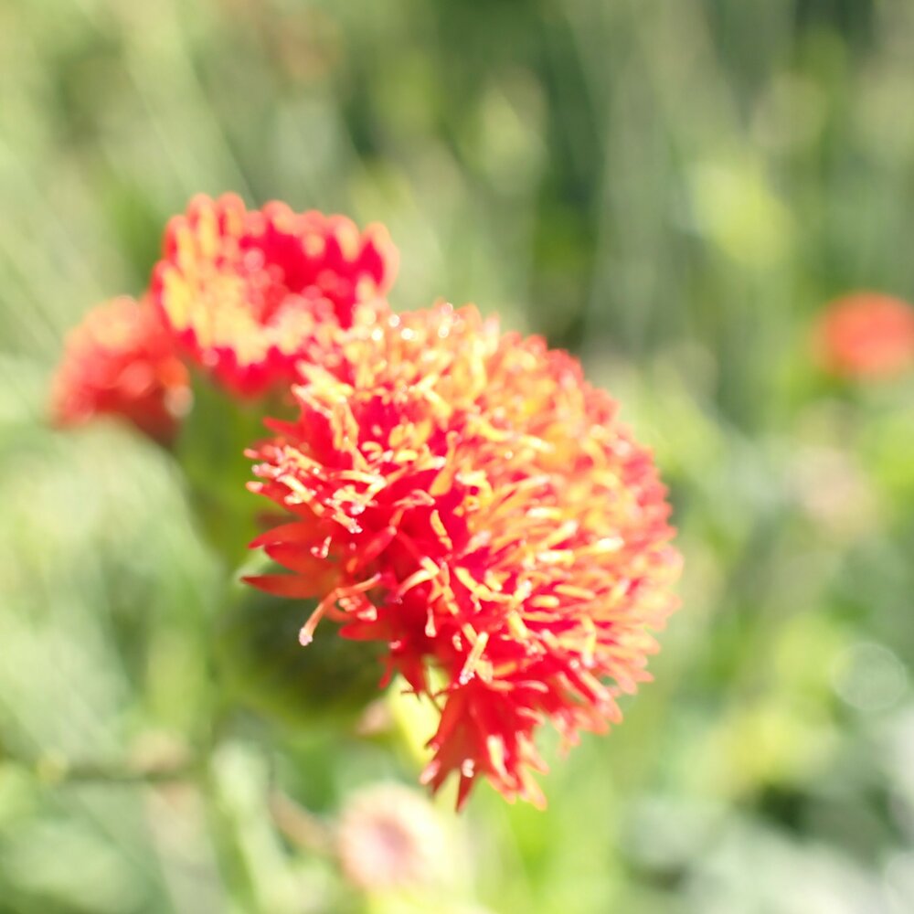 Fleurs annuelles d'un rouge orangé éclatant. Les fleurs sont portées par des tiges graciles, ce qui donne à la plante un aspect aérien. Très lumineuses, elles sont du meilleur effet en touffes dans un massif. La floraison dure tout l'été. Se ressème toute seule. Originaire d'Afrique, elle se plait sur des sols drainants. Les feuilles peuvent se consommer crues ou cuites, finement hachées.