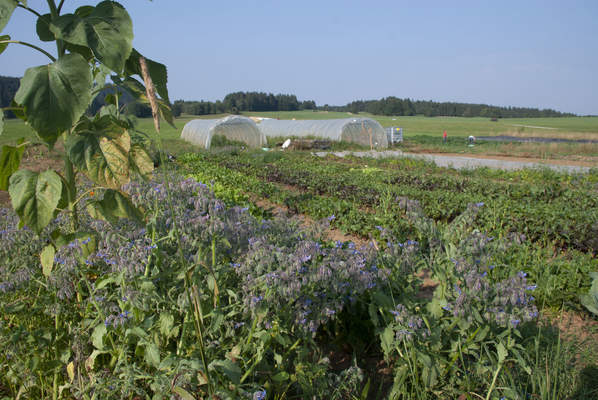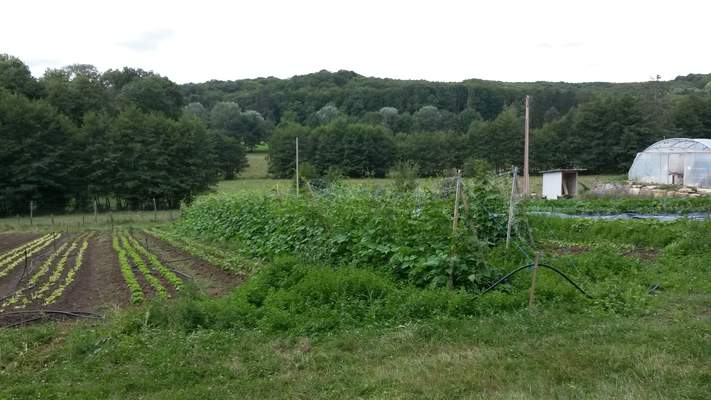 Situé à presque 900m d'altitude, à 4km du village d'Arçon près de Pontarlier, nous avons commencé notre activité de maraichage biologique en 2016. Nous cultivons nos légumes sur un sol peu ou pas travaillé, avec apport de matière organique en vue de maintenir une vie importante, gage de légumes en bonne santé.