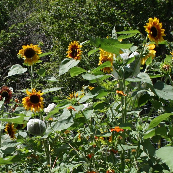 Très beaux tournesols de 1,5 à 2,5 m de haut. Floraison échelonnée pendant 2 mois. il fera une multitude de branches avec des petites et grosses fleurs jaunes. La fleur préférée des mésanges.